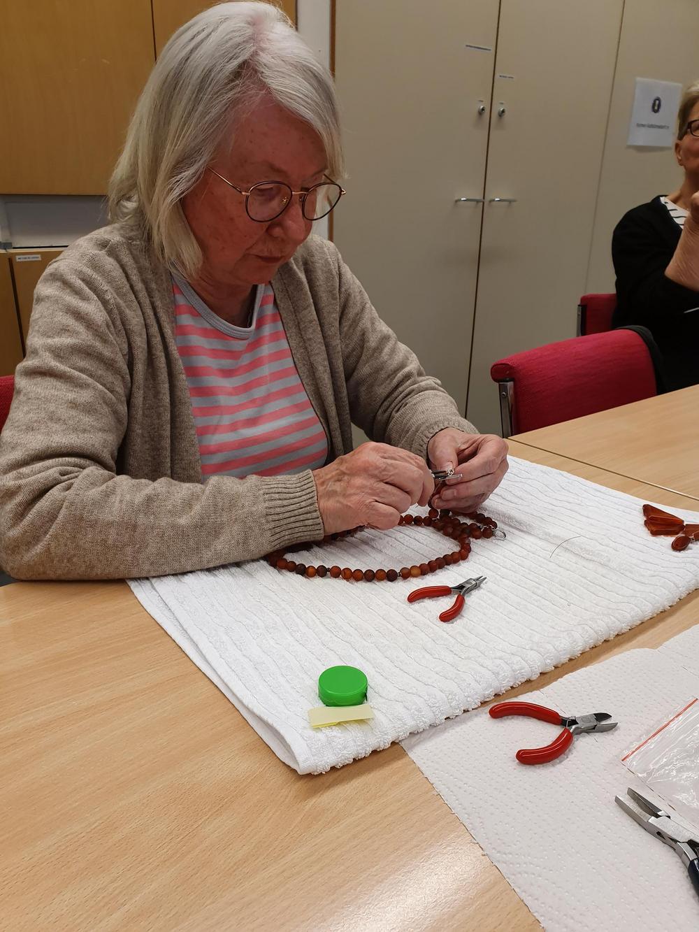 Korjailtiin ja tuunattiin vanhoja koruja ja tehtiin myös uusia kivi- ja lasihelmistä 25.4.2022