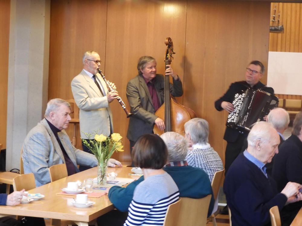 Maaliskuun kuukausitapaaminen alkoi tällä kertaa erinomaisella musiikkituokiolla, jossa paikkakunnan parhaat jazzmusikantit, Heikki Kauppinen, Erkki Liikanen ja Mika Huusari, esittivät meille tuttuja evergreenejä. On sitä ilo kuunnella kun ammattimiehet ovat asialla! Musiikkiosuus päättyi "Kotkan kansallislauluun: Rannalla istuimme, haitari soi, aalto löi liplattaen..." Hyvällä mielellä siirryttiin kevätkokoukseen, jossa mm. vahvistettiin toimintakertomus ja tilinpäätös sekä valittiin yhdistyksen äänivaltaiset edustajat tuleviin piirin ja liiton kokouksiin.