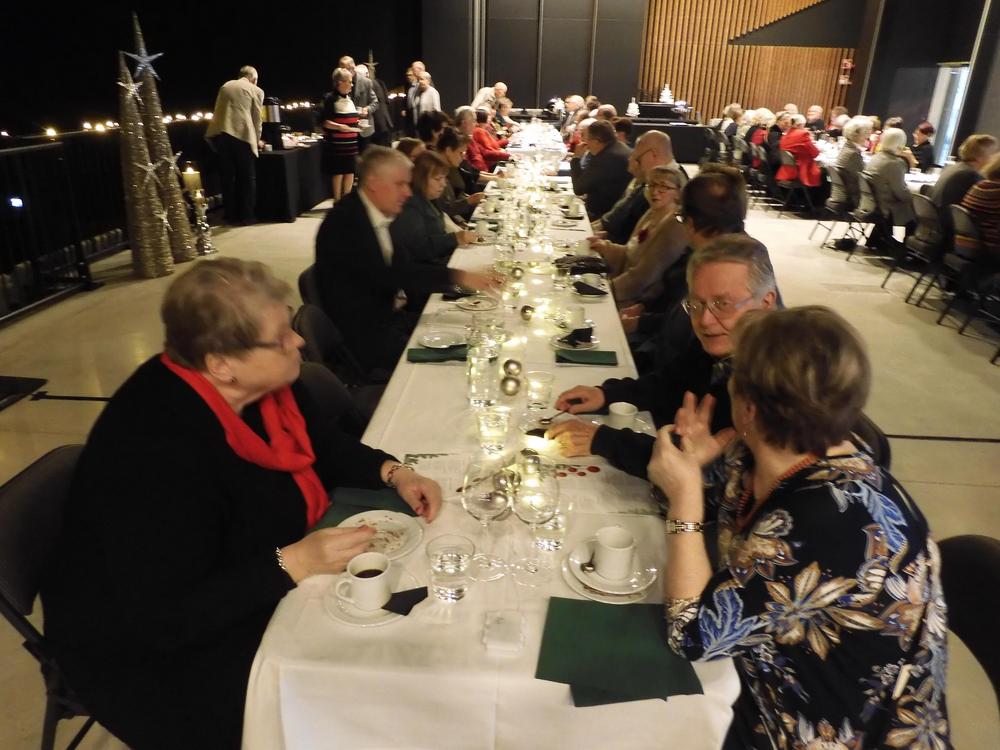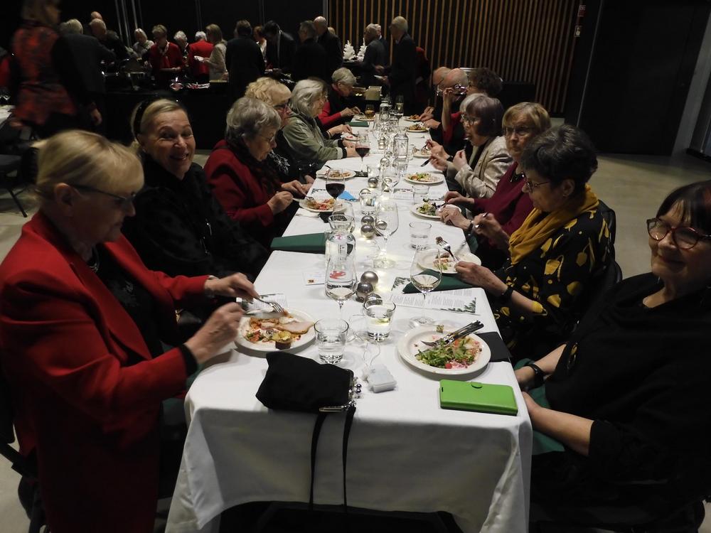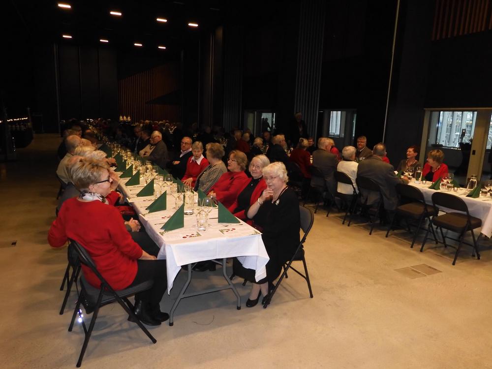 Kotkan seniorit nauttivat ohjelmallisen joululounaan tänä vuonna upouuden Satama Areenan toisen kerroksen juhlasalissa. Senioreita osallistui tapahtumaan yli 120 henkeä. Musiikkinumeroita esittivät Timo Lahtimo säestäjänään Seija Kelavirta sekä Svenska Samskolanin oppilaista koottu Lucia-kuoro. Senioriliiton kultainen ansiomerkki jaettiin kolmelle ansioituneelle jäsenelle ja kerhonvetäjät sekä puheenjohtaja kukitettiin joulutähdillä.
