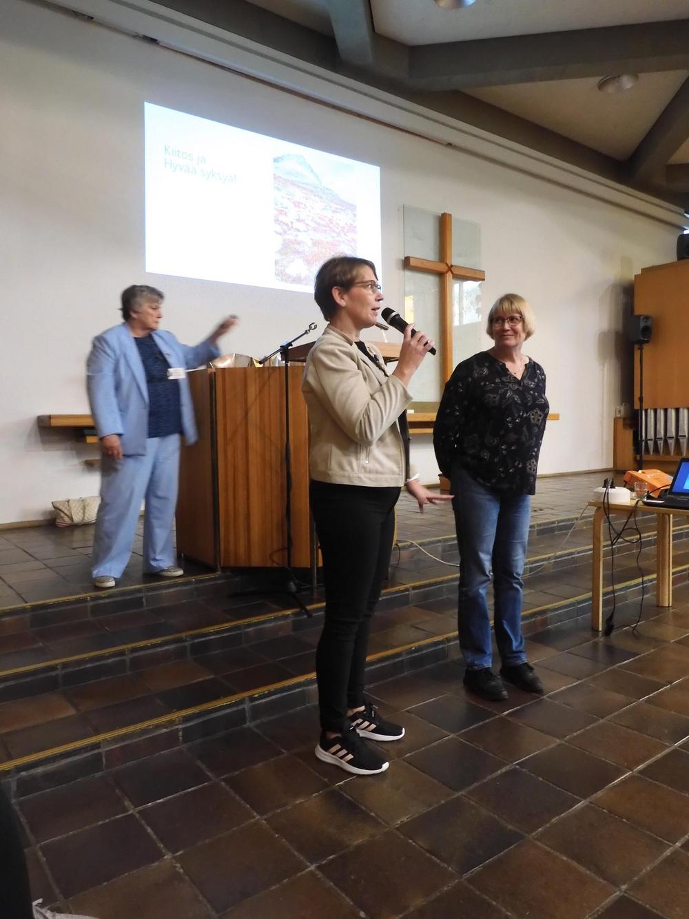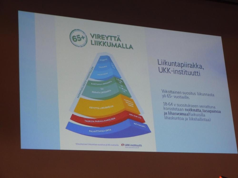 Geriatri Katri Laitinen kertoi ikäihmisen hyvästä elämästä, mitkä seikat siihen vaikuttavat, millä voidaan edistää hyvää vanhenemista. Hän kertoi myös vanhenemisen aiheuttamista muutoksista ja siitä, mitkä ovat ne hälytysmerkit, jolloin pitäisi hakeutua lääkärin tutkimukseen.