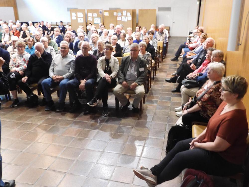 Mukana oli myös geronomi Tiina Orava. Senioriyleisöä oli esitystä kuulemassa ennätysmäärä eli 132 henkeä.