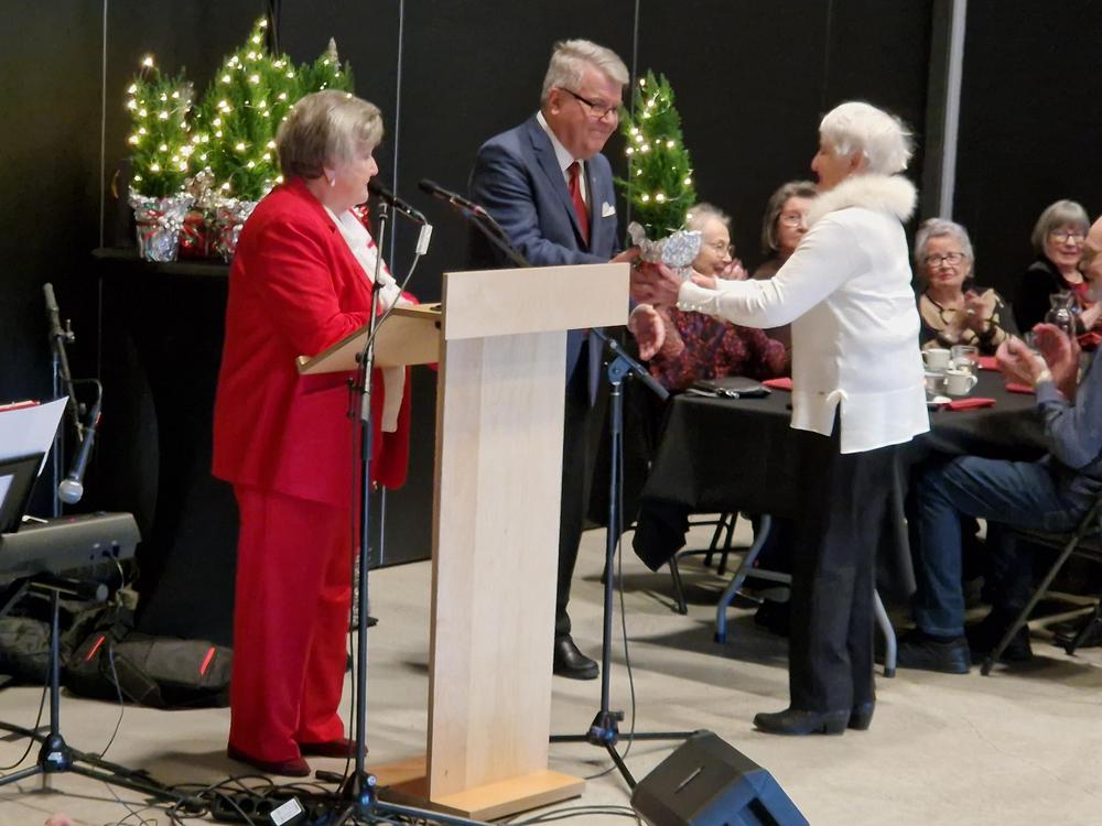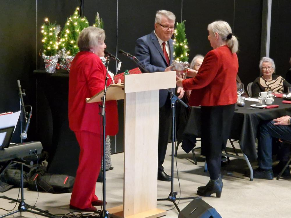 Lisäksi luovutettiin elämäntyöpalkinto Eeva Rosendalille senioriyhdistyksen hyväksi tehdystä työstä. Uudeksi kunniapuheenjohtajaksi valittiin Tauno Kankanen. Senioriliiton kultainen ansiomerkki luovutettiin Helena Tietäväiselle. Kerhon vetäjiä muistettiin jouluisella sypressipuulla.